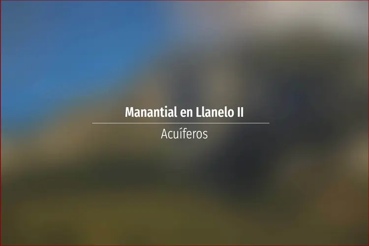 Manantial en Llanelo II. Acuífero en Asturias: Cuenca: Norte Unidad Hidrogeológica: Unidades aisladas Sistema acuifero: Acuífero aislado Cota: 910 Naturaleza: Manantial Uso: Abastecimiento a núcleos urbanos Perímetro: No tien ...